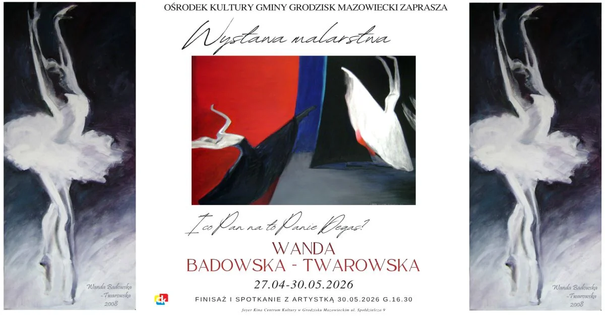 W Grodzisku Mazowieckim szykuje się ciekawe spotkanie ze sztuką 30 maja w foyer Kina Centrum Kultury odbędzie się finisaż wystawy malarstwa Wandy Badowskiej-Twarowskiej — to dobry moment, żeby zobaczyć prace artystki tuż przed zakończeniem ekspozycji i zajrzeć do świata pełnego tańca, muzyki i wyważonych form. Warto wybrać się na ten finał wystawy.