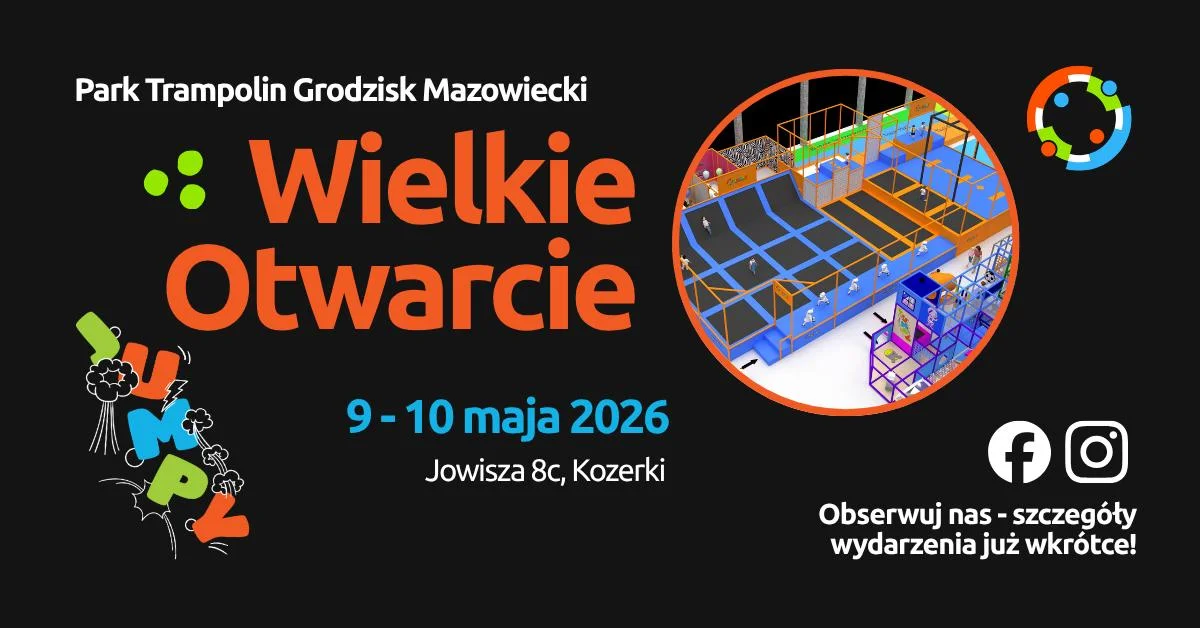 W Grodzisku Mazowieckim szykuje się coś dla fanów ruchu, energii i dobrej zabawy Już w majowy weekend JUMPY zaprasza na wielkie otwarcie, a organizatorzy na razie trzymają część atrakcji w tajemnicy. Wiadomo za to jedno: będzie się działo naprawdę dużo. Warto zapisać ten termin.