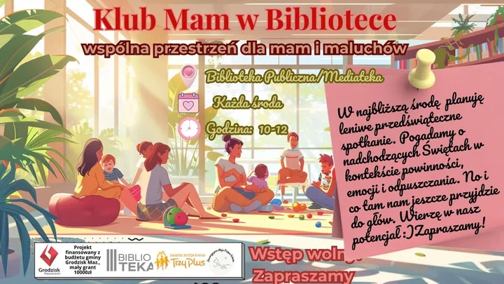 W Grodzisku Mazowieckim szykuje się ciepłe, swobodne spotkanie dla mam, które chcą na chwilę zwolnić, pogadać z innymi kobietami i pobyć w życzliwej przestrzeni razem z dzieckiem Warto zajrzeć w środę do biblioteki, jeśli masz ochotę na trochę rozmowy, wsparcia i zwyczajnego bycia wśród swoich.