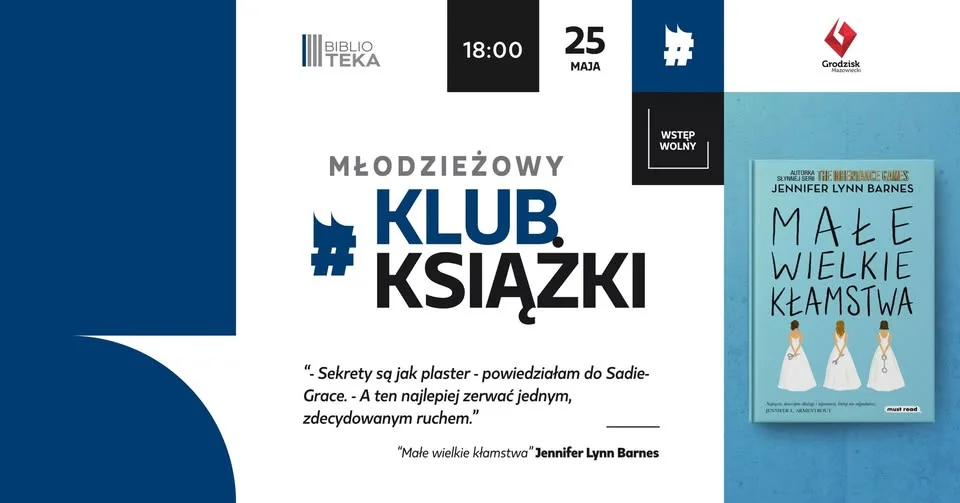 W Grodzisku Mazowieckim szykuje się spotkanie dla młodych czytelników, którzy lubią książki, ale jeszcze bardziej lubią o nich rozmawiać W Młodzieżowym Klubie Książki na tapet trafia „Małe wielkie kłamstwa” Jennifer Lynn Barnes — historia pełna sekretów, pozorów i nieoczywistych relacji. Jeśli macie 13+ i chcecie wpaść w luźną, naprawdę młodzieżową atmosferę, to warto zajrzeć.