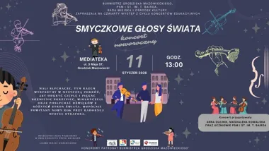 Zabierzcie najmłodszych na krótką, kolorową podróż dźwięków — skrzypce i wiolonczela opowiedzą historie z różnych zakątków świata, a na zakończenie wspólnie przywitamy Nowy Rok dźwiękami Straussa. Warto wybrać się na to rodzinne spotkanie i posłuchać muzyki w miękkim, domowym klimacie.