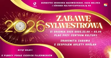 - Od godz. 22:00 do 02:00 zabawa z zespołem Arlety Królak — muzyka na żywo, energiczne kawałki i wspólne odliczanie do północy